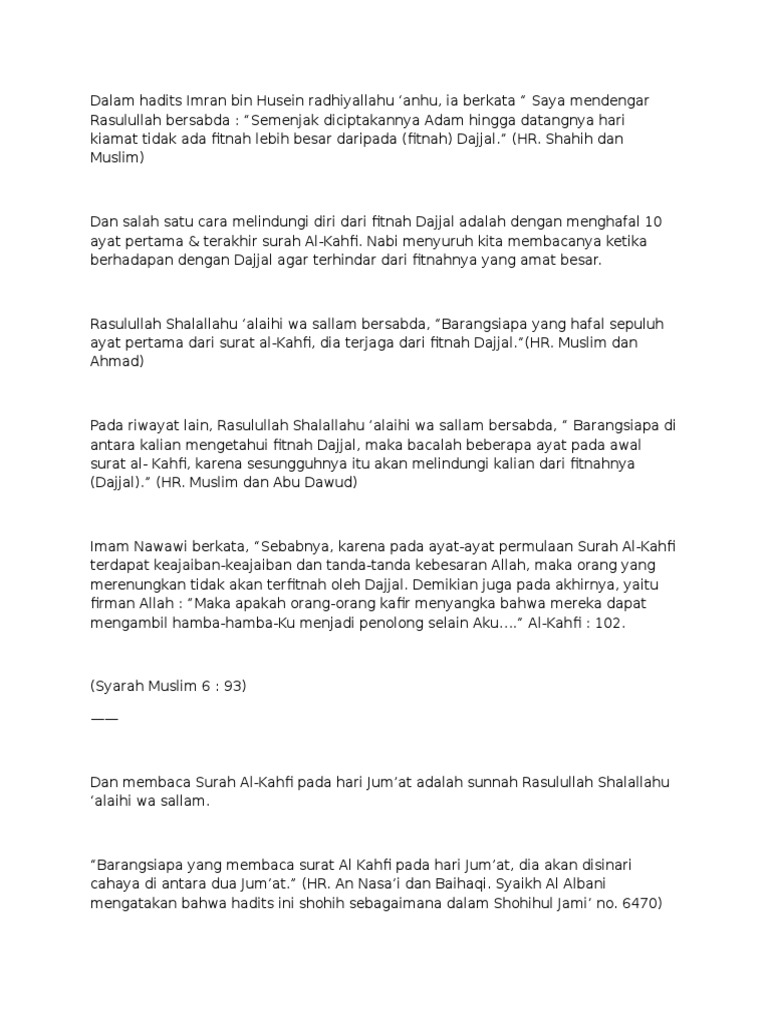 Kepentingan Surah Al Kahfi Agar Terhindar Dari Fitnah