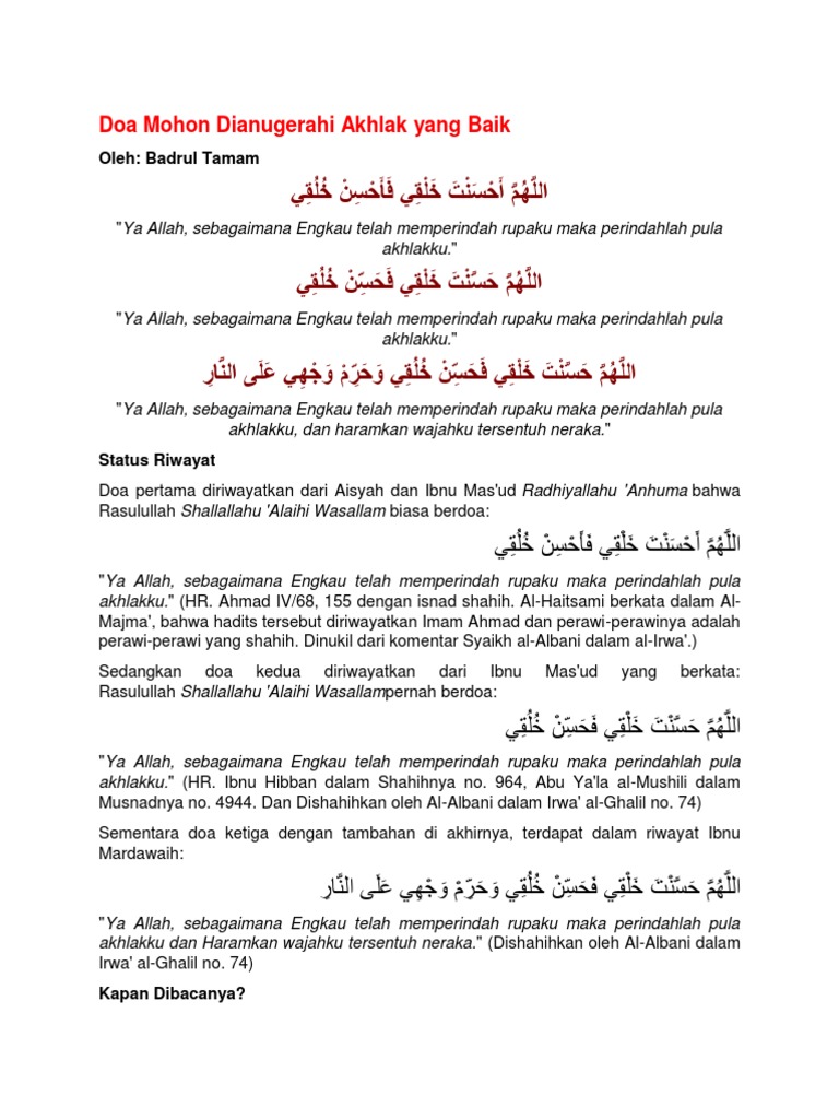 Risalahmuslim Doa Mohon Dianugerahi Akhlak Yang Baik