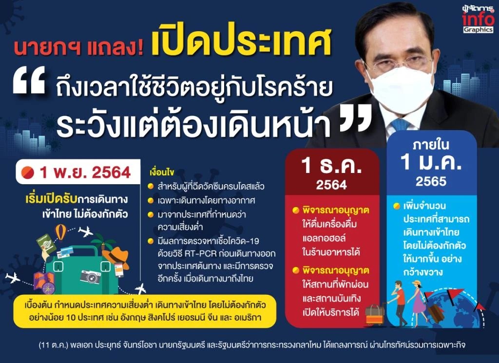 1 dag geleden · การเปิดประเทศ 1 พ.ย. คืบหน้าอีกก้าวใหญ่ กับการแถลงเรื่องสำคัญของพล.อ.ประยุทธ์ จันทร์โอชา นายกรัฐมนตรี เมื่อค่ำวันที่ 11 ต.ค. นี้ คาด 15 จังหวัด พื้นที่รองรับนักท่องเที่ยว. 2564 เป็นเพียง จุดเริ่มต้น ของการฟื้นฟูประเทศและฟื้นฟูเศรษฐกิจ ซึ่งมีการคาดหวังว่าจะเป็นการสร้างแรงส่งของการท่องเที่ยว. 64 เปิดรับนักท่องเที่ยวต่างชาติ ฟื้นท่องเที่ยว ผลที่ชัดเจนน่าจะเห็นในปี 65 คาดนักท่องเที่ยวต่างชาติเที่ยวไทย.